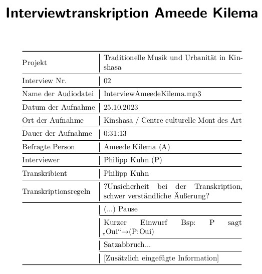 Ameede Kilema ist der langjährige künstlerische Leiter des Ballet Umoja, eines der bekanntesten Ballets in Kinshasa, das Musik und Tanz unterschiedlicher Kulturen aus dem Kongo praktiziert. Er spricht unter Anderem über das Verschwinden der traditionellen Instrumente.
